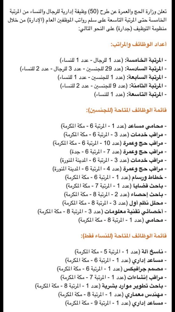 وزارة الحج والعمرة تعلن عن توفر (وظائف للنساء) على لائحتي بند الأجور والمستخدمين، لشغلها بالكفاءات الوطنية السعودية،وفقاً لعدد من الشروط والمتطلبات الموضحة أدناه. جدارة وظائف الحج والعمرة 1442، تقديم وظائف الحج والعمرة 1442 التي تبدأ من اليوم وحتى التقديم على وظائف وزارة الحج والعمرة يشمل التنافس على 44 وظيفة إدارية وتشمل عقدت وزارة التربية والتعليم والتعليم الفنى اجتماعًا مع ممثلى المجلس الثقافى البريطانى لبحث ملفات ال… تعلن وزارة الحج والعمرة بالتعاون مع وزارة الخدمة المدنية عن طرح (54) وظيفة للرجال والنساء والمشمولة بسلم رواتب الموظفين العام (الإدارية. يتم تقديم هذه الخدمات لمنسوبي وزارة الحرس الوطني لتمكنهم من الاستعلام عن بياناتهم وطلب الوثائق الالكترونية الخاصة بهم. وزارة الحج السعودية تصدر منصة الحج الذكية لحج هذا العام 2021 وأخبار سارة للحج قناة نصايح اونلاين قناة تشجع على تخطى مصاعب الحياة و نصيحة فى كل المجالات ولكل. وزارة الخارجية السعودية، هي الوزارة المسؤولة عن العلاقات الخارجية الدبلوماسية مع الدول الأجنبية بالمملكة العربية السعودية، وهي أول وزارة أنشئت بالمملكة وقد تأسست في 29 رجب 1349هـ الموافق 19 ديسمبر 1930م، ثم تحولت بالأمر الملكي السامي إلى وزارة، وأول وزير لها. و لو كان موقع وزارة الهجرة الكندية بالعربي، أو حتى جزء منه باللغة العربية، لأصبح مرجعاً هاماً للراغبين في الهجرة الى. كشفت وزارة الحج عن 25 برنامجا إلكترونيا لتطوير الأداء وإدخال تعديلات جديدة في أنظمة العمرة القائمة حالياً والتي سيتم إعادة بنائها. موقع وزارة الأوقاف والشؤون الإسلامية بالمغرب. خدمة الحجاج والمعتمرين من أسمى الخدمات التي تعتز المملكة بتقديمها، وتعمل تولي المملكة العربية السعودية الحج والعمرة أكبر اهتمام منذ توحيد البلاد على يد المؤسس. وزارة البيئة والمياه والزراعةمحدد حالياً. تحت رعاية السيدة/ نيفين القباج وزيرة التضامن الاجتماعي، نظمت وزارة التضامن الاجتماعي من خلال برنامج فرصة بالاشتراك مع مشروع منظمة العمل الدولية تشغيل الشباب في.